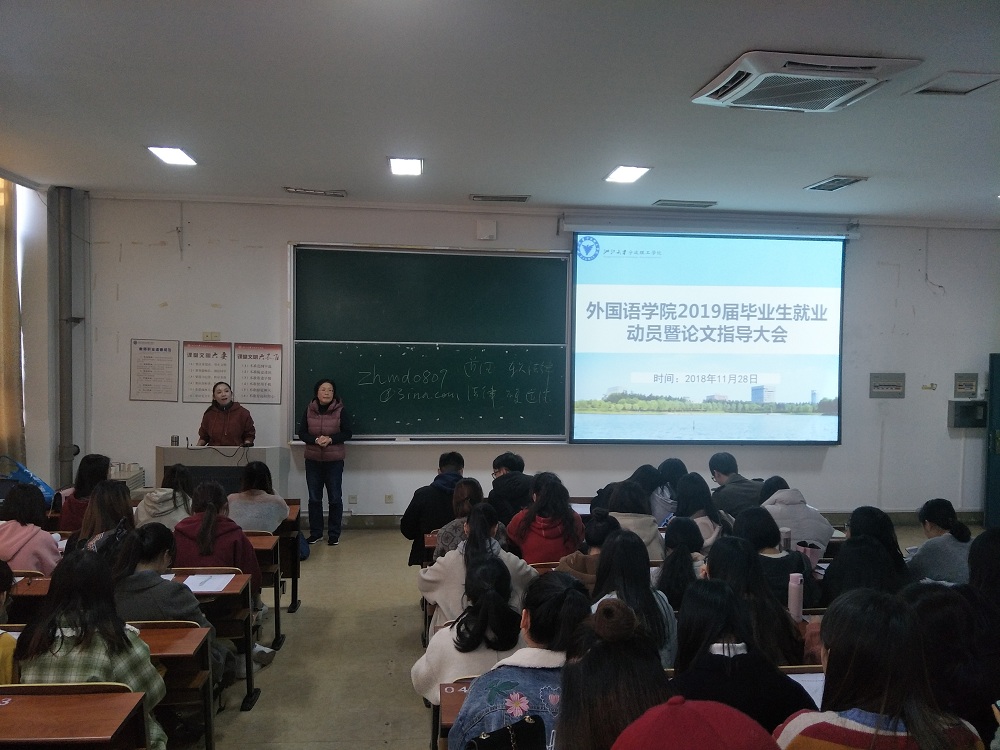 学院一直高度重视毕业生的就业工作。早启动、早关注、早安排。韩晶晶老师做就业动员讲话。她为同学们分析了今年国家的经济形势,要求大家认识到目前就业形势的严峻性。同时,要克服等、靠、要的心理,积极主动地去参加各类招聘会,拓宽就业思路,实现高质量就业和多渠道就业。同时韩老师在鼓励同学们参与考研、公务员、事业单位招考的同时,要“两条腿”走路,不忘参加招聘会和就业实习。同时韩老师为大家详细介绍了学校毕业进程的安排,特别对就业协议签订注意事项、就业协议书的意义、毕业生登记表填写、就业进度把握等问题做了重点介绍。