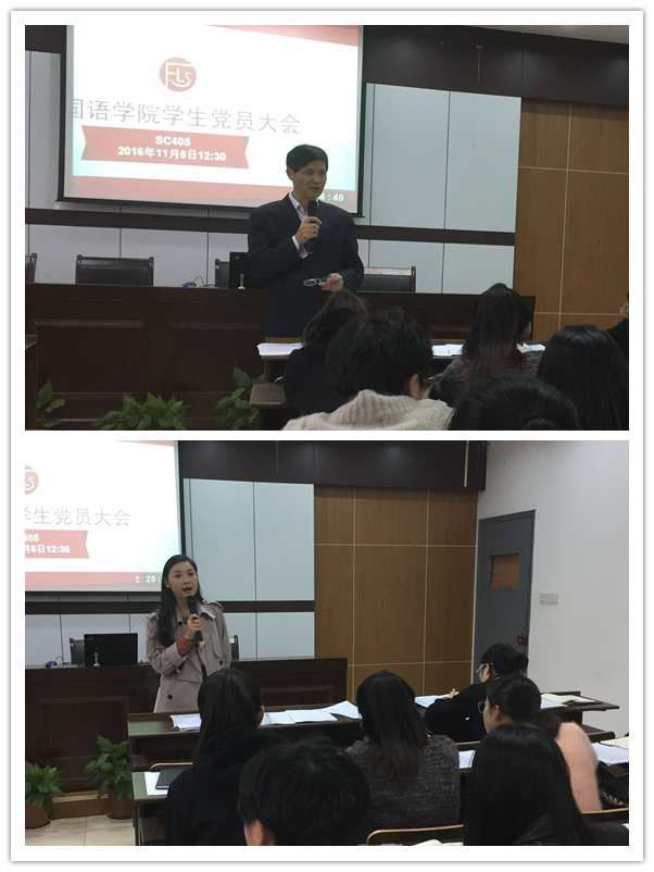 谌书记结合自身学习体会为全体支部党员解读了十八届六中全会精神,并要求党员同学们认真学习全会公报、习近平总书记讲话等重要内容,同时,结合品牌党支部建设工作目标和学生工作实际情况,深入领会全会精神,严于律己,努力提升党性修养、学习能力和工作水平。此外,谌书记就文明寝室建设、优良学风创建等当前重点和难点工作,要求各位党员发挥积极的作用。