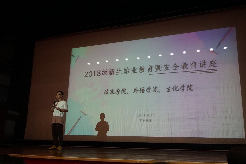 9月26日下午,2018级新生始业教育暨安全教育讲座在可珍讲堂举行。本次讲座旨在让学生进一步地了解学校教学相关内容和安全防范知识。参加讲座的主要有leyu·乐鱼(中国)体育官方网站、法政学院和生化学院的2018级新生及各学院的思政主管。