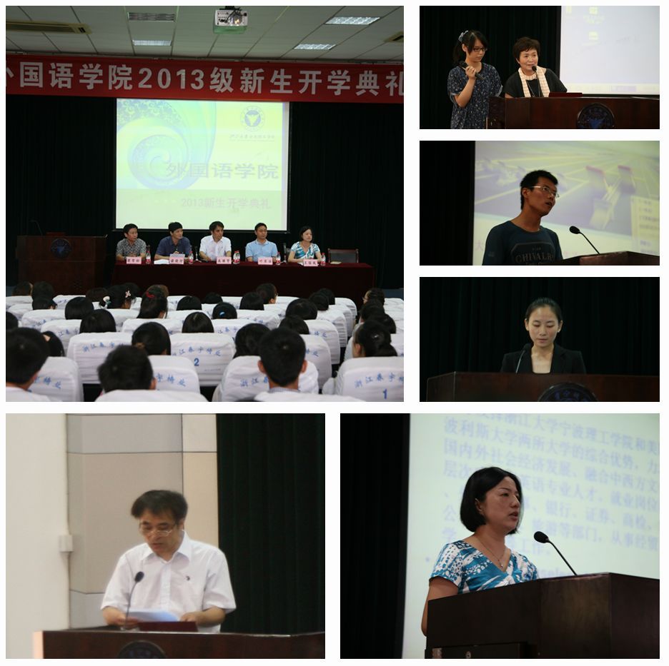 9月8日上午,浙江大学宁波理工学院leyu·乐鱼(中国)体育官方网站2013级新生开学典礼在NF103举行。leyu·乐鱼(中国)体育官方网站党政领导庞继贤、谌晓煜、叶琴法、梁雪松和王国凤,外国语言研究所负责人张振梅和陆莺,学院教师代表汪德华、吴会芹、魏健、陈黎峰、陈俊林、孙广平和林潇,外籍教师田头明子,学院党政办和学工办俞峰、郑巍、方芳、刘杰和刘杜娟,新生班导师蒋阳芬、周文、卜霄艳、徐志敏、夏佳来,以及各班导助理参加了开学典礼。大会由党总支书记谌晓煜主持。