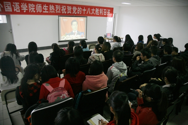 为了让学生第一时间能收看党的十八大盛况,外语学院党总支在SC四楼大厅和学生生活园区电视机房安排了两个现场转播点。SC四楼大厅收看点靠近师生上下课通道,一幅“leyu·乐鱼(中国)体育官方网站师生热烈祝贺党的十八大胜利召开”的横幅特别醒目,一些下课后经过收看点的师生都禁不住驻足观看。