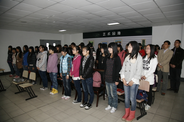 收看胡锦涛总书记作政治报告 收看点现场师生起立唱国歌