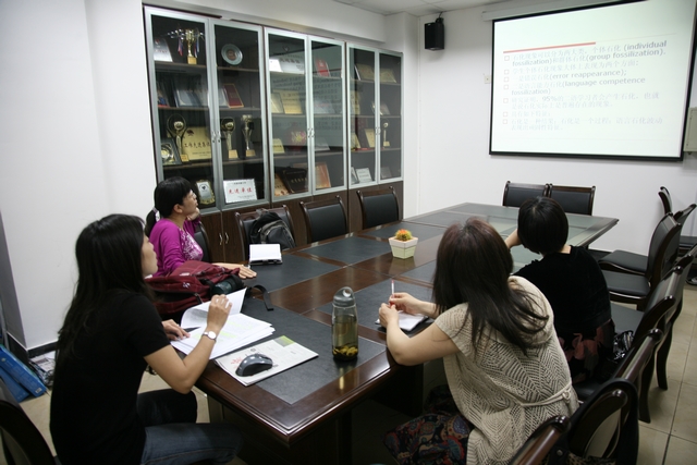 李飒老师从首先对中介语的石化现象定义入手,综述了当下对英语学习石化现象的成因代表论:心理论、生物论、文化迁移论、认知模式论和相互作用论,从而进一步提出了运用当下一种崭新的兰盖克语法理论,用于消解英语专业词汇石化的现象。随后,他又具体介绍了兰盖克语法反映人类认识事物的特性以及在大脑中的不同地位和作用。得出她的最新研究成果:用兰盖克的折衷主义方法论、原型理论、范畴化理论和隐喻理论等几个方面分别提出了如何消解英语专业词汇教学中的石化。