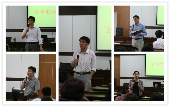 会议一开始,三位新教师作了简短的自我介绍,表示将尽快适应新的工作环境,在新岗位上努力工作,并对入职过程中学院各方面对他们的关心和帮助表示感谢。与会教师报以热烈的掌声表达对新来同事的欢迎。接着,我校学生赴加拿大渥太华大学暑期游学带队老师孙广平副教授向大家简要介绍了基本情况,参加赴南宁、西安参加暑期教学培训的胡海鹏、郭小春两位老师也与大家分享了培训的体会和见闻。