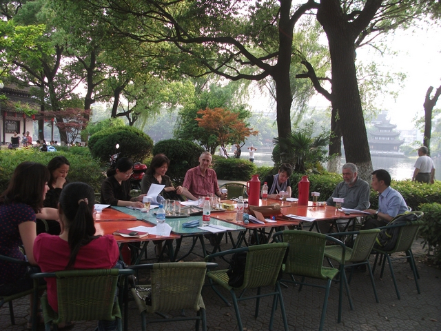 2012年5月6日下午,由宁波诺丁汉大学、浙江大学宁波理工学院、宁波大学等校教师联合创建的语料库语言学协会在月湖公园金蕊堂进行了座谈。参加座谈的有宁波诺丁汉大学、宁波大学、浙大宁波理工学院、宁波工程学院的部分教师和博士生。宁波诺丁汉外教Susannah首先介绍了她的研究课题,即借助语料库语言学的研究方法探讨如何保护环境的相关议题,尤其是关注非政府组织(NGO)的话语体系。随后,浙江大学宁波理工学院吴会芹副教授介绍了她的最新研究,即如何将一些汉语的特殊句式纳入轻动词的研究范畴,并在逻辑缀词理论框架下对这类汉语轻动词现象进行理论解释。之后,大家就如何运用语料库的强大功能对生成语言学理论的研究提供支持,以及如何将语言学理论应用于机器翻译等问题进行了热议。研讨会在轻松、热烈的气氛中持续了两个多小时,最后,大家就如何积极推动宁波的语料库语言学的研究和发展,促进兄弟院校之间的学术交流与合作,以及今后的聚会形式等问题进行了商议。
