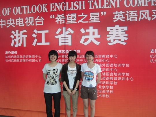 2011年6月5日,“CCTV希望之星”英语风采大赛浙江省决赛在杭州市委党校拉开序幕。我院的王婉灵、谢祺和金丹露同学,在大赛中展示了自己的风采。