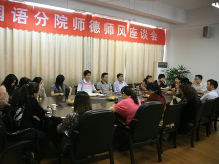 5月13日下午,由外国语分院党总支、外国语分工会共同组织发起的师风师德建设座谈会在SC409举行,分院党总支书记谌晓煜、副院长叶琴法以及各研究所负责人和教师代表等近30人参加了这次讨论。 分院党总支书记谌晓煜老师在会上首先对分院广大教师爱岗敬业、严谨治学、为人师表、教书育人的良好师德师风给予了充分地肯定,同时指出,师德师风建设关系到学校的人才培养,也直接影响到学院的发展,希望外国语分院全体教师结合目前全市上下正在广泛开展的“三思三创”活动,充分认识师德师风建设的重要性,通过解放思想,认真思考,努力寻找标杆和差距,不断增强使命感与责任感,共同为建设良好的师德师风做出应有的贡献。 外语语言研究所的魏健老师结合其三十年的从教经历交流了对师风师德建设的体会与认识。他提到,要尊重学生,待生如子,做到“严而有格、言而有度、严而有方”,教会学生学习、生活、做人,帮助他们健康的成长。外国语分院教学院长叶琴法老师也深有体会。他说,当前社会存在着不少的不良因素对大学生的培养产生了负面影响,这就要求我们对师德师风建设工作常抓不懈;要以诚心、爱心走进学生的心灵空间;同时也要求广大教师具有团队的合作意识,在师德师风方面要互相学习,相互支持与配合。 与会的其他教师在座谈会上也纷纷剖析了自身的从教行为,深刻反思师德师风的困惑与问题。通过座谈,教师们对建立和谐的积极的师生关系有了更深的感悟。 分工会副主席李军老师在会议最后发出了外国语分院师风师德建设的倡议,希望全体教师树立正确的职业理想,敢于奉献;规范自己的学术行为;廉洁从教;互相尊重,以人为本,不断提高自身的修养,要在实际工作中践行良好的师风师德,努力成为爱学校、爱岗位、爱学生、爱学习的“宁波理工人”。