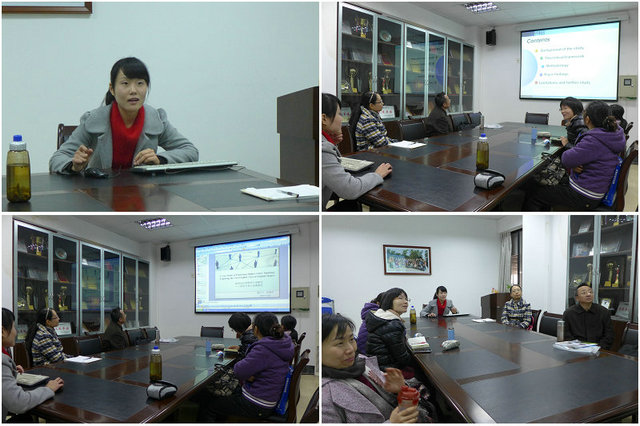 程老师的研究引起了在座教师们的极大兴趣,大家认为她的研究视角新颖,并有强大的理论体系做支撑。这种研究不仅突破了以传统模式为基础的教学教研性研究论文的思维框架,而且还能解决许多与教学相关的实际问题,对于促进英语教学具有一定的借鉴意义。最后,大家还就什么是高层思维能力,如何改变教学策略,如何激发学生在课堂中的热情等问题进行了广泛交流和讨论。