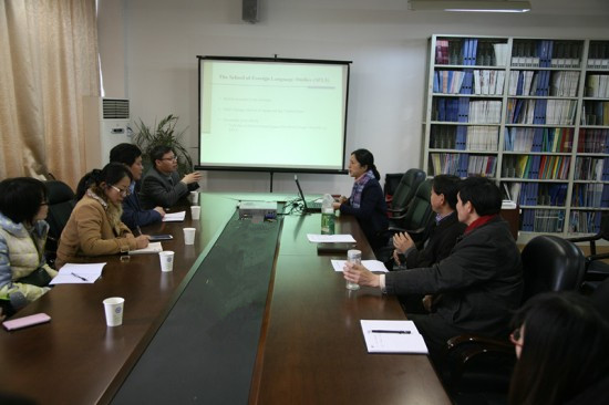 会上,谌晓煜书记首先对贺晓武院长一行表示欢迎。王国凤副院长介绍了leyu·乐鱼(中国)体育官方网站的基本情况,她重点介绍了近年来我院英语、日语专业在师资队伍、人才培养和对外交流等方面所采取的一些好的办法。贺晓武院长对我院在教学工作中所做的努力表示赞赏,同时他也介绍了温州大学瓯江学院在人才培养和实践教学等方面的工作经验。叶琴法副院长就我院大学外语的基本情况做了简要的介绍,他重点对浙江大学宁波理工学院外语网络自主学习平台进行了介绍,贺晓武院长一行对该平台表现出浓厚的兴趣并就具体的建设细节与叶琴法老师进行了深入的交流。