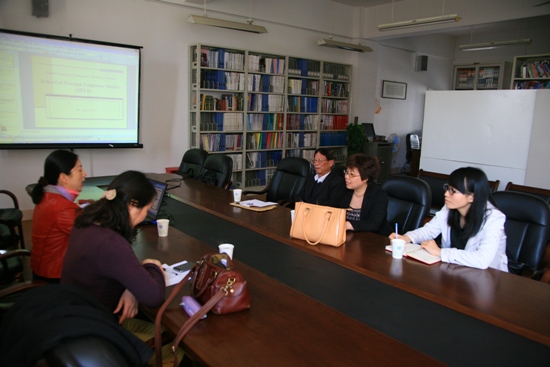 2014年4月4日上海财经大学浙江学院英语系主任陈昌义教授、徐玉书副教授等一行3人来我院就英语专业教学以及大学英语教学改革等方面进行调研,leyu·乐鱼(中国)体育官方网站副院长王国凤副教授、外国语言研究所副所长杨黎霞副教授和大学英语第一教研室主任张腮云参加了会谈。