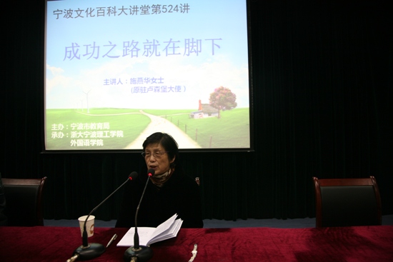 如果说人生就像一本书,那么她便是一本波澜跌宕扣人心灵的小说。她说个人的成功是与国家命运紧密相连的;她还说个人的成功是在无数的挫折中奋进以及不同的错误中反省所造就的;她说每个人都渴望成功,但万不可好高骛远,唯有脚踏实地,才能真正达到成功的彼岸。她便是中国外交部英文专家、中国英语翻译协会副会长、外交部原驻卢森堡大使——施燕华。 3月10日晚,我院携手宁波市文化百科大讲堂邀请施燕华女士莅临我校,为我校学子开展《成功之路就在脚下》的主题讲座。出席当天讲座的有leyu·乐鱼(中国)体育官方网站党总支书记谌晓煜老师、宁波市文化百科大讲堂盛育东老师以及学院学工办主任方芳老师等,leyu·乐鱼(中国)体育官方网站2011级、13级全体同学参加了讲座,此外还有来自其他分院的旁听的学生,整个报告厅座无虚席,热情涌动,表达了学生对于施女士讲座的期待之情。 讲座开始前,方芳老师首先介绍了施燕华女士的人生履历,从她18岁才开始接触英文一直到后来担任周恩来、邓小平等国家领导人的随行翻译秘书,施燕华女士的“翻译逆袭”立即牢牢吸引了现场同学们的注意力。他们用最热烈的掌声表达了对施燕华女士的欢迎。 施燕华女士首先向举办这场讲座的宁波市文化大讲堂以及leyu·乐鱼(中国)体育官方网站表示了感谢,随后即向在场师生抛出了这样一个问题:“什么是成功?”。同学们纷纷表达了自己的看法:有人说成功就是“出名,要光宗耀祖”;有人说,拥有一个“幸福的家庭”便是成功;还有人说只有“治国平天下,才是真正的成功者所为”。同学们个性多彩的回答,缓和了原本严肃的会场气氛。在接下来的时间里,施燕华和在场的师生一起分享了她的人生经历,从小家境贫困,父亲在外打工,母亲文盲,她在家中9子中排行老六。窘困的现实使她早早成熟,小小年纪便立志要努力读书、学有所长,做一个对家庭有用的人,对社会有用的人。18岁开始学习英文,刚开始进入外交部也只是做一些文字翻译、文稿修改等事务性工作,但施女士并没有就此止步,而是充分抓住任何可能令自己学习提升的机会:向部里的老同志请教,经常琢磨国家领导人的语言风格,甚至在平时洗衣服的时候也一边听新闻联播一边进行翻译尝试。机遇总是会垂青有准备的人,最终在一次外事翻译中因一个翻译员过度紧张,临时决定由她担任周总理的随行翻译。施燕华女士坦言自己当时有太多的紧张与兴奋,但更多的是那份沉静与自信,最终她圆满完成了翻译任务。总理会后的那句“不错,好好努力!”对她是莫大的鼓励与动力。在讲座中施女士也一直讲到:人的成功是多方面因素,与社会形势相关联但更与个人的努力奋斗密切相关。 演讲中,施燕华女士还回忆了在中美建交前期他与丈夫吴建民先生一起赴联合国工作,与美国前国家安全事务助理基辛格秘密会晤的情形,为同学们生动再现了上个世纪东西两个大国之间政治博弈的波诡云谲。此外她还与同学们分享了在外事翻译中的一些趣事,例如在国事宴会中误把“烤鸭”翻译成“受伤的鸭子”;在跟随领导人协调军事问题的时候,第一次因为一些军舰性能指标等专业名词的翻译而完全卡壳,后来为了迅速了解各种军事武器专业名词的翻译,愣是硬生生啃下了厚厚的一本《简氏军事词典》。 讲座最后,施燕华女士还与同学开展了积极的互动,同学们都踊跃举手发言,把现场气氛再次引向高潮。施燕华女士非常耐心的解答了师生们提出的问题,这让老师和同学们都受益匪浅。讲座结束以后,学院师生们一起欢送施燕华老师离场。本次讲座使同学们充分领略到了外语成就人生,语言改变世界的重要意义,也进一步激发了同学们认真开展专业学习的热情。