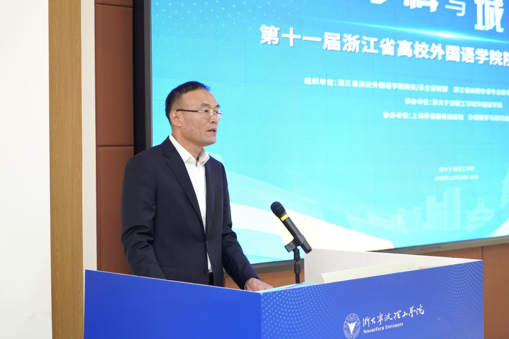 本次论坛以“外语学科与城市文明”为主题,来自35所高校的百余位外国语及相关院系领导专家齐聚一堂,立足新一轮学科专业结构调整与区域经济社会发展需求,系统思考外语教育如何更有效地服务城市发展、产业升级与文明交流。论坛将通过主旨报告、专题发言与圆桌论坛等形式,重点聚焦外语学科专业重塑、复合型与交叉型人才培养、外语教育与产业及地方发展的深度融合等关键议题,推动外语学科在服务城市高质量发展中实现功能拓展与内涵提升。浙江省高等学校外国语言文学类专业教学指导委员会主任、原浙江leyu·乐鱼(中国)体育官方网站校长洪岗教授、浙大宁波理工学院副校长张荣祥分别致辞,开幕式由leyu·乐鱼(中国)体育官方网站党委书记刘群娣主持。